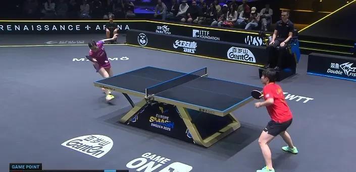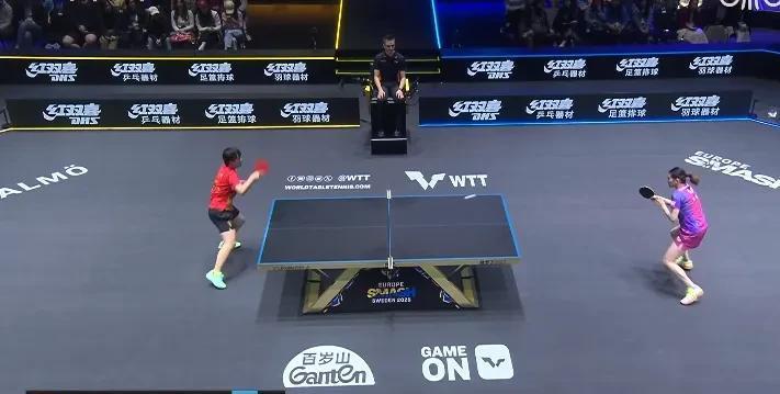 第一局蒯曼飞快进入状态,和石洵瑶打的有来有回,比分追得很紧,最后以蒯曼胜出收尾。